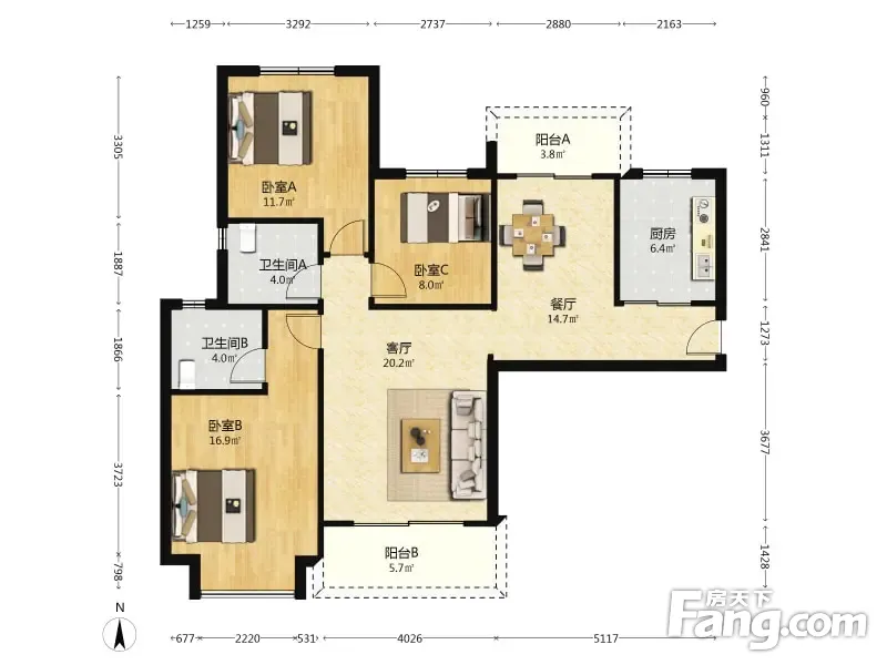 户型齐全,主打明卫,双阳台三居