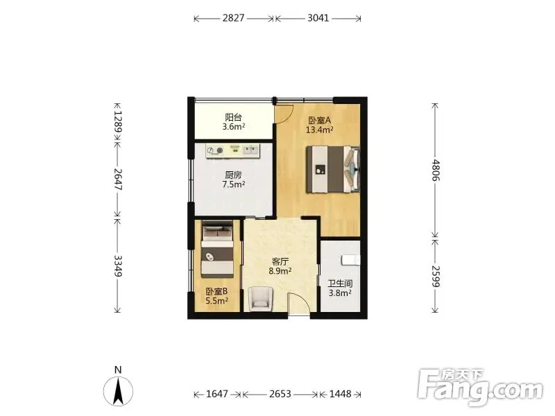 户型齐全,主打户型方正,明厨,客厅朝南,主卧朝南一居