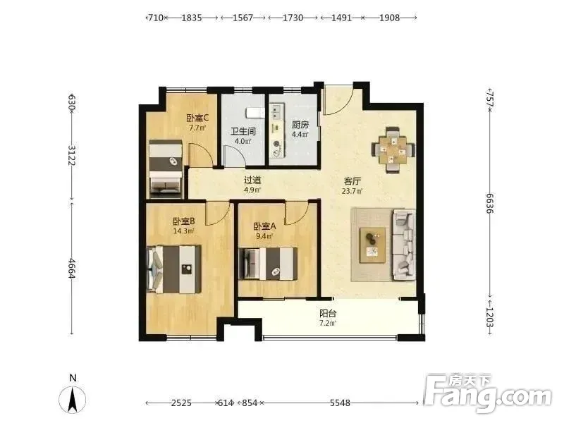 户型齐全,主打户型方正,明卫,明厨,主卧朝南三居