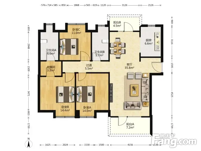 户型齐全,主打明卫,独立衣帽间,明厨,客厅朝南,全明格局,双阳台,双卧朝南三居