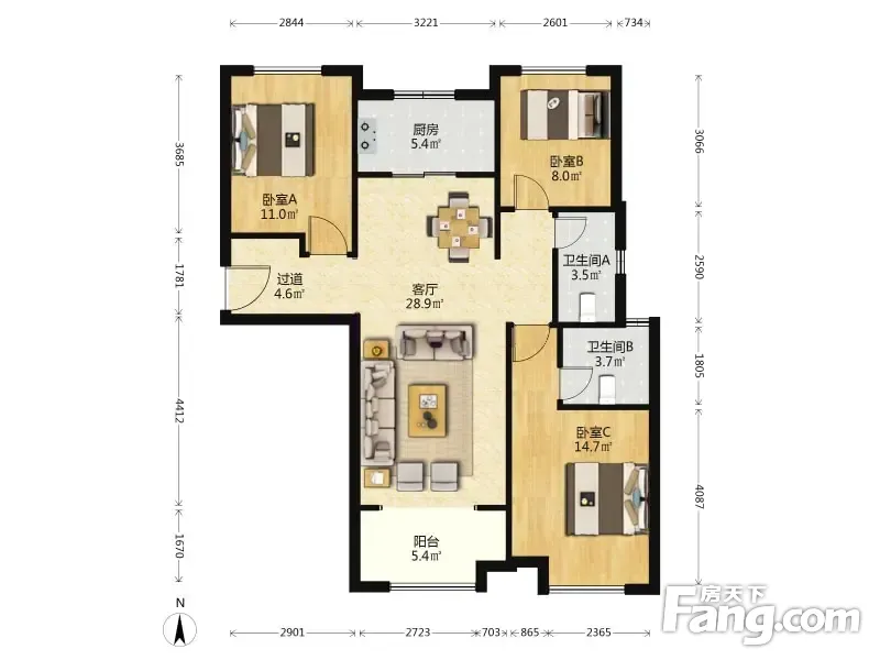 户型齐全,主打户型方正,明厨,明卫,客厅朝南,全明格局,主卧朝南三居