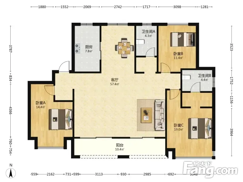 四房两卫,精装修交付,近地铁大悦城,大横厅