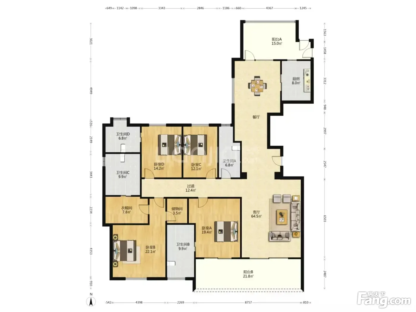 房屋拥有相对宽松的尺寸,布局通透,动静分离,设计豪华