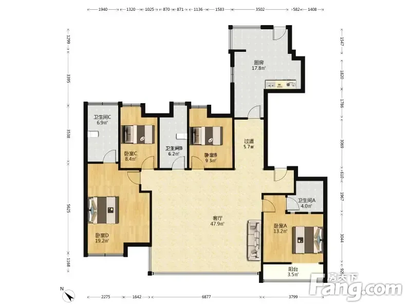 户型齐全,主打南北通透,户型方正五居