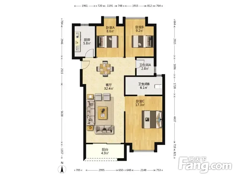 户型齐全,主打南北通透,全明格局三居