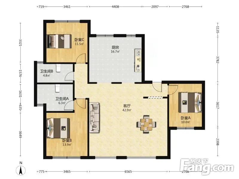 户型齐全,主打南北通透,全明格局三居