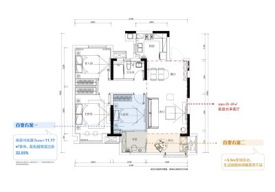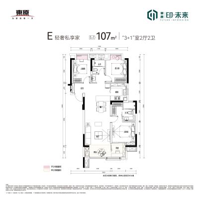 东原印未来户型主要有95平-107平的户型方正,客厅朝南的三居 、127平-127平的主卧套间,双阳台的四居 。