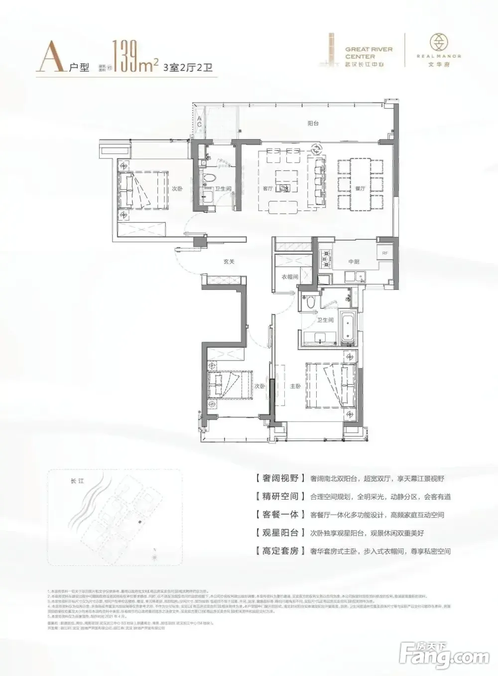 武汉长江中心户型主要有180平-285平的全明格局,明厨明卫的四居 、155平-155平的南北通透,采光充足的三居 。