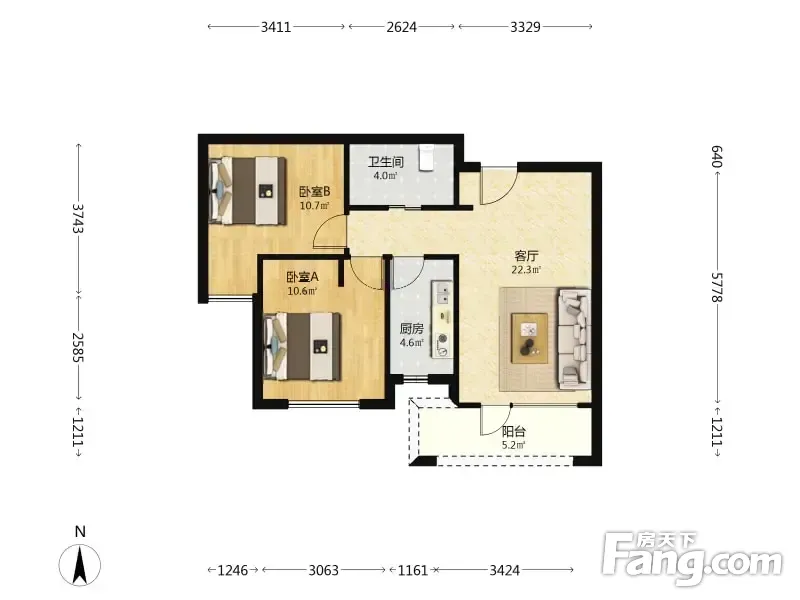 户型齐全,主打户型方正,明卫,明厨二居