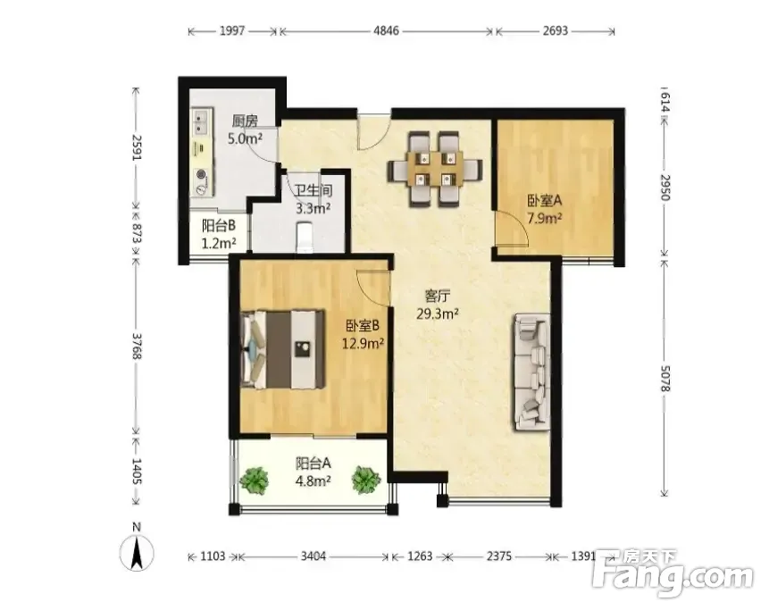 户型齐全,主打户型方正,客厅朝南,双阳台二居