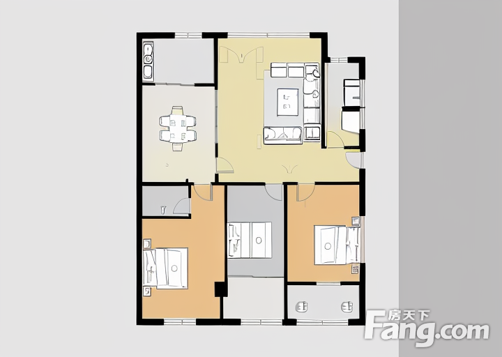 户型齐全,主打明厨,明卫,客厅朝南,全明格局三居
