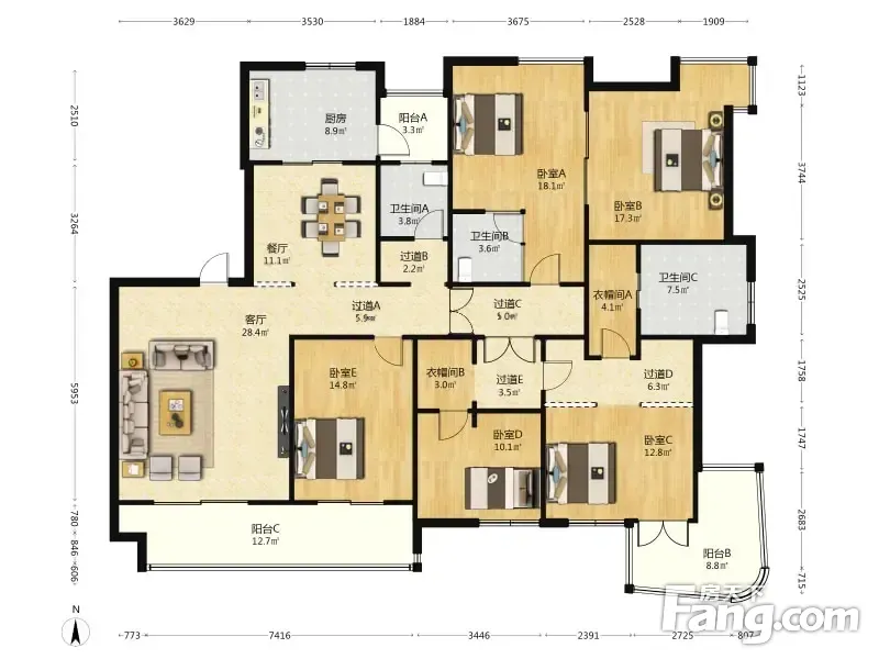 房屋拥有相对宽松的尺寸,布局通透,动静分离,设计豪华