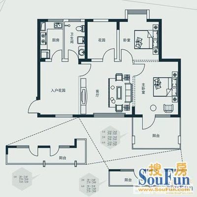 户型齐全,主打户型方正,客厅朝南,明卫四居