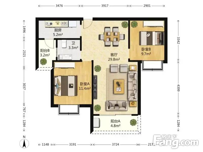 户型齐全,主打户型方正,客厅朝南,双阳台,双卧朝南二居