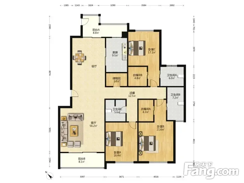 房屋拥有相对宽松的尺寸,布局通透,动静分离,设计豪华