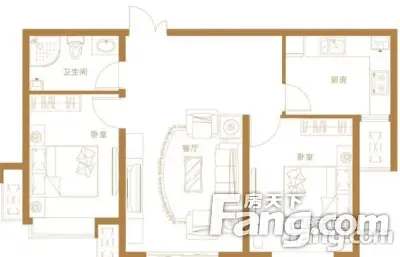 户型齐全,主打明厨,客厅朝南,双卧朝南二居
