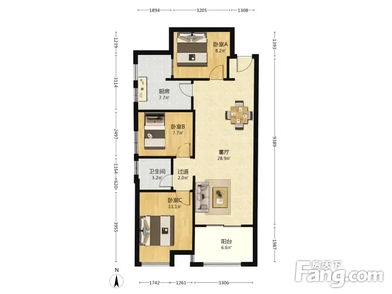 顶琇国际城3室2厅南