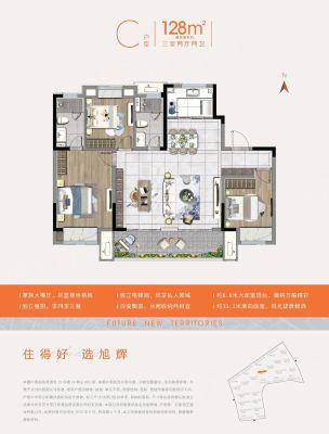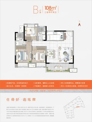 旭辉城户型主要有108平-128平的卧室朝南,三开间朝南,U型厨房,大面宽阳台的三居 。