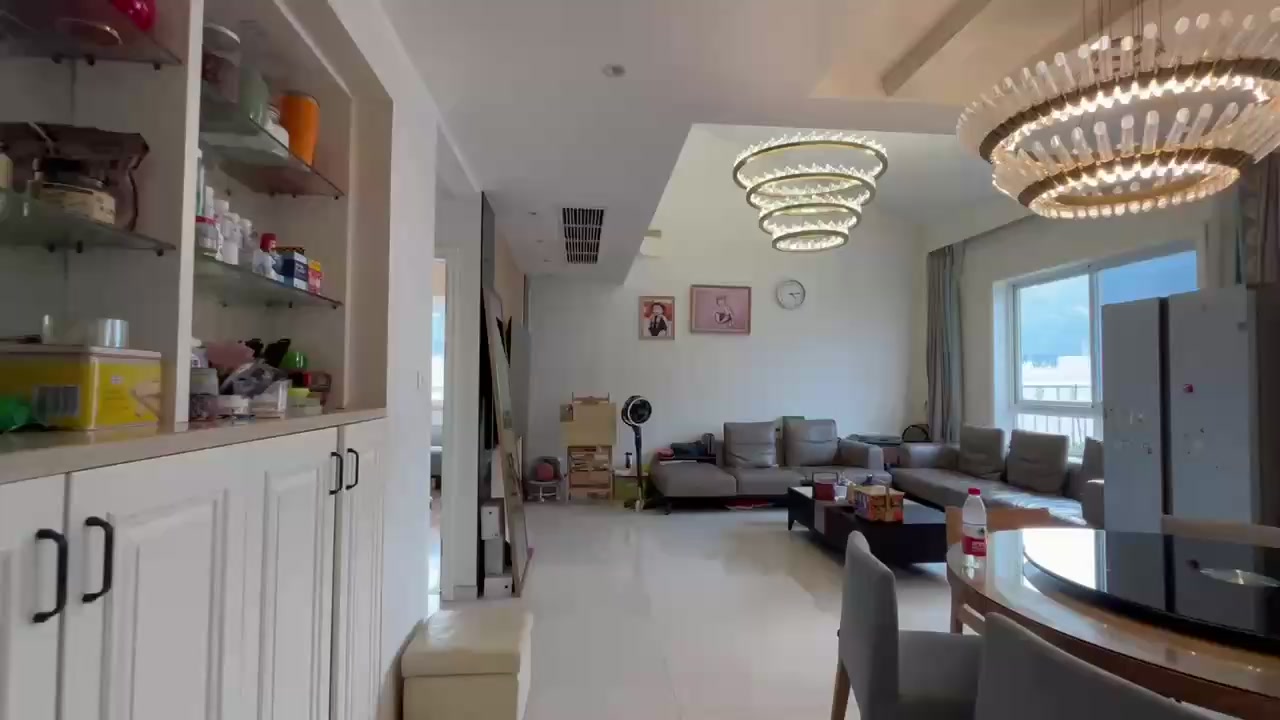 产权108平跃层 买一层送一层,得房率160多平 一楼做了厨房餐厅客厅,还有两个睡房一个书房 二楼房东改成收纳空间,因为一楼已经够住了,所以二楼就没有改造,直接空着做收纳空间,平常放一些贵重的东西!