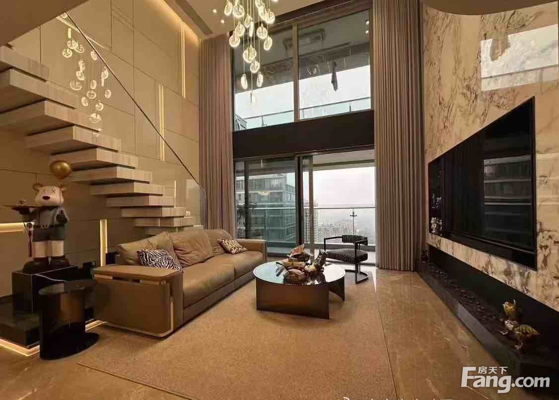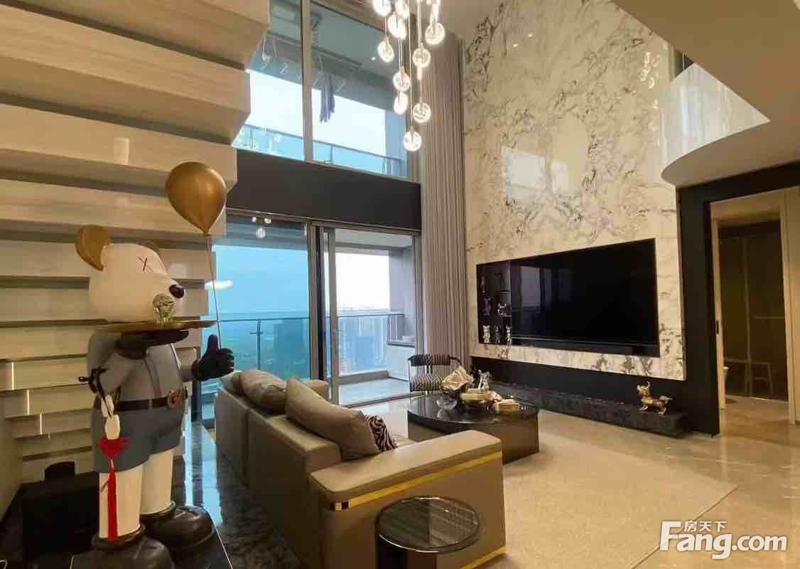 产权282平边间顶跃 套内做了五房+一书房六卫 客厅采用中空更显大气 房开装标加房东二改花了500万拎包入住 私人露台可布局种些绿植 朝南观景阳台视野非常开阔, 直看绿轴湿地公园天然氧吧!