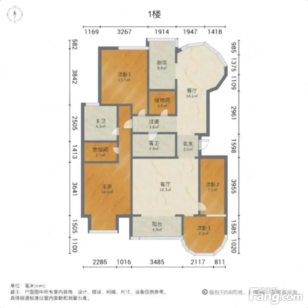 户型齐全,主打独立衣帽间,明厨,明卫,客厅朝南四居