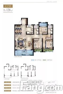 世茂璀璨山河户型主要有118平-128平的明厨,明卫,双阳台,双卧朝南,主卧朝南的三居 。
