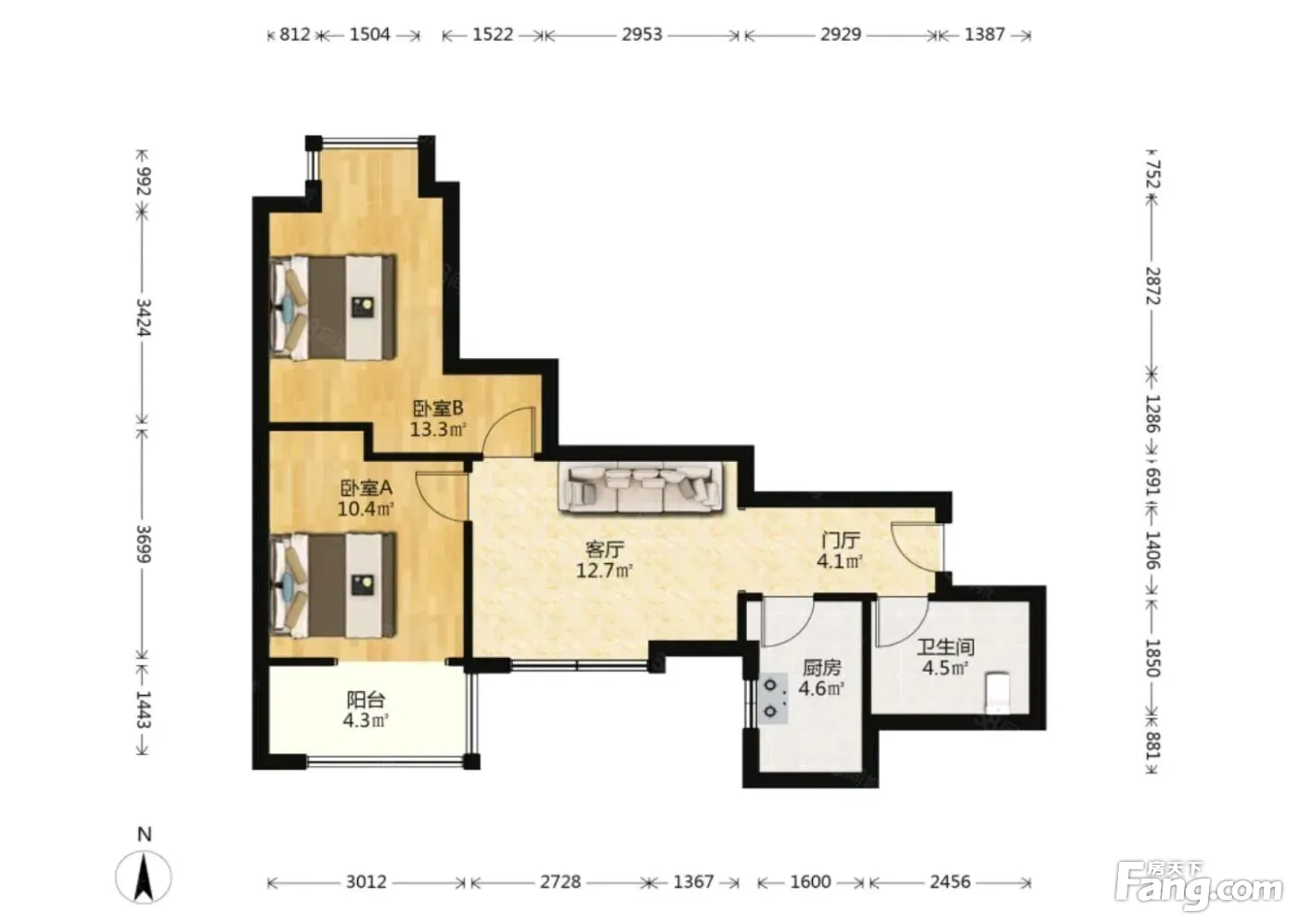 户型齐全,主打明厨,客厅朝南二居