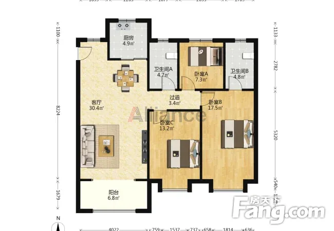 户型齐全,主打全明格局,户型方正,采光充足,客厅朝南三居