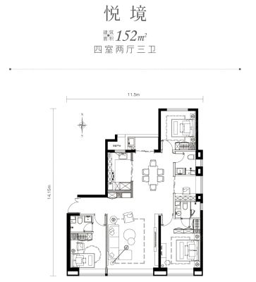 南海·高芯悦澜户型主要有123平-143平的南北通透,客厅朝南的三居 、143平-178平的南北通透,全明格局的四居 。