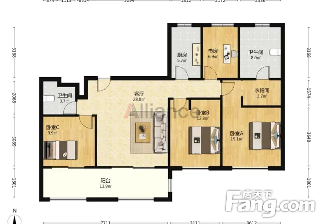 长安金茂府户型主要有135平-139平的南北通透,全明格局的三居 、206平-206平的全明格局,采光充足的四居 。