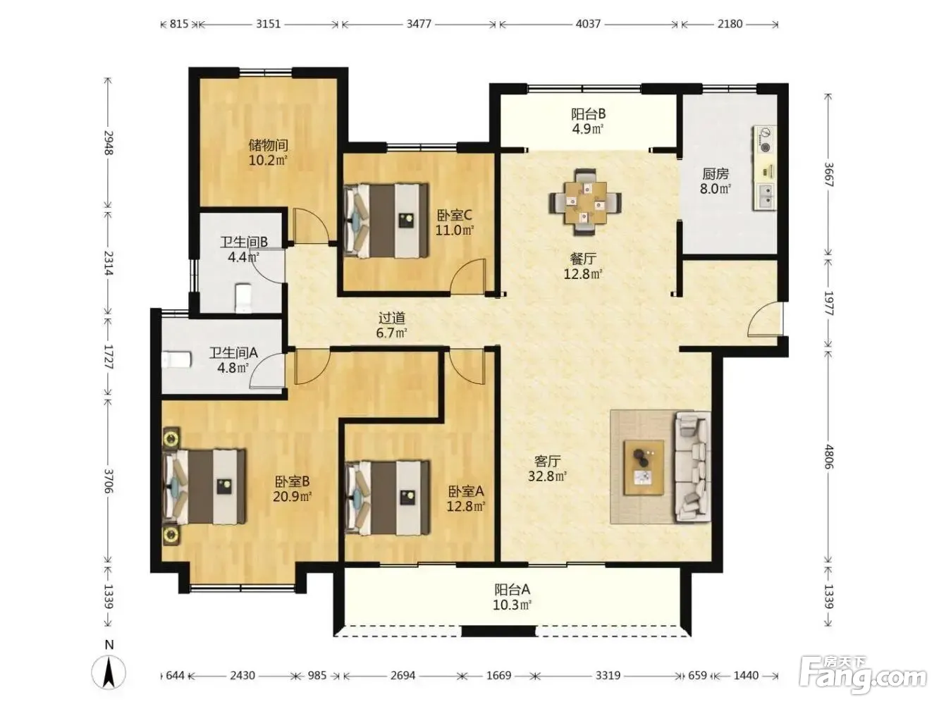 户型齐全,主打南北通透,全明格局三居