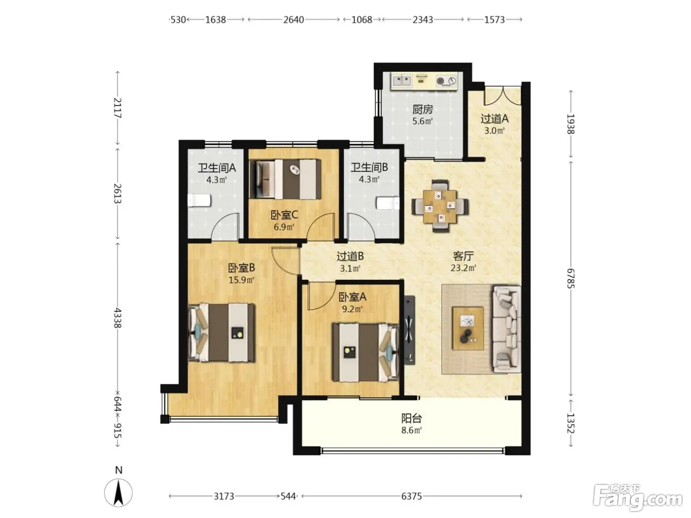 3室1厅2卫