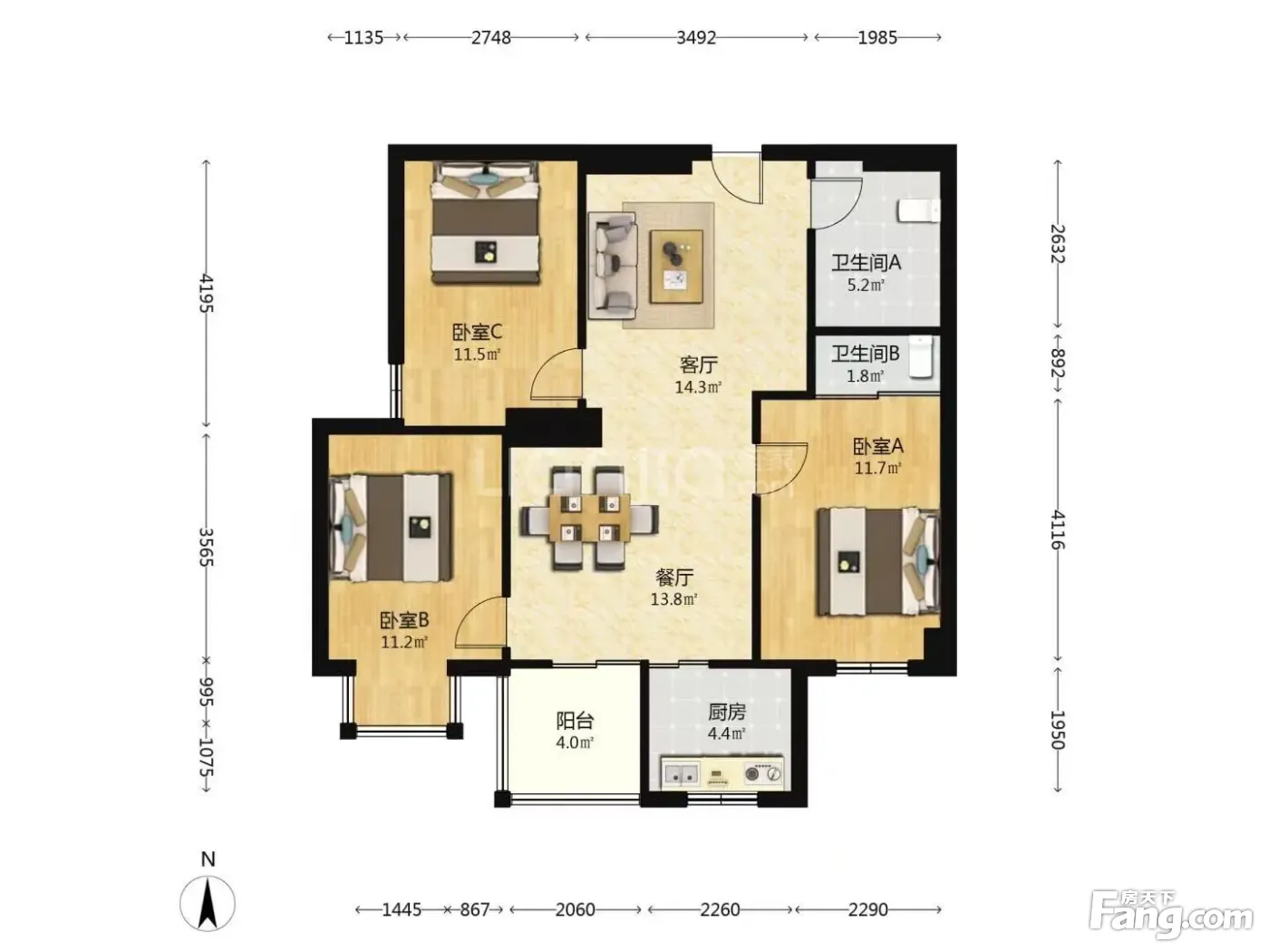 3室2厅1卫