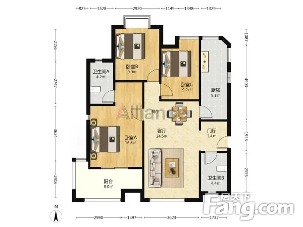 户型齐全,主打明厨,明卫,客厅朝南,全明格局,主卧朝南三居