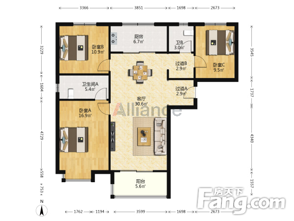 户型齐全,主打露台,飘窗三居