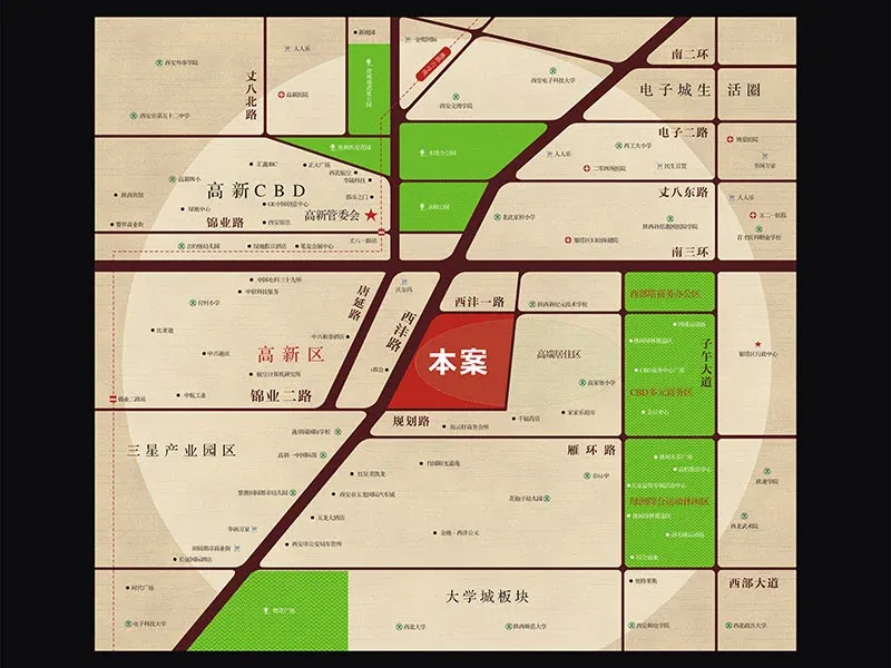 小区介绍: 小区一期共计5栋楼7个单元,由北京中集宏达开发,项目位于西沣路和西沣一路东南夹角,总占地余亩,分两期开发,南侧是待开业的红星美凯龙综合商,北侧为城市生态公园的一部分,距离绿地笔克1公里,交通方便,高新后花园. 周边配套: 本小区往北3公里有万达one购物商场,往西安3公里有阳光天地购物商场,与新规划的宜家荟聚也只有1.5公里,还有521医院、交大附属医院长安区医院、高新医院等,距离高新国际幼儿园、高新国际小、学,逸翠园中、学,高新国际高中部只有1公里的距离 交通出行: 从小区北门出发到地铁6号线丈八一路站只有2公里,到绕城高速高新收费站业主有1公里的距离,楼下也有发往城西