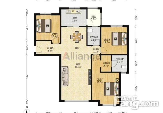 户型齐全,主打客厅朝南,卧室朝南三居