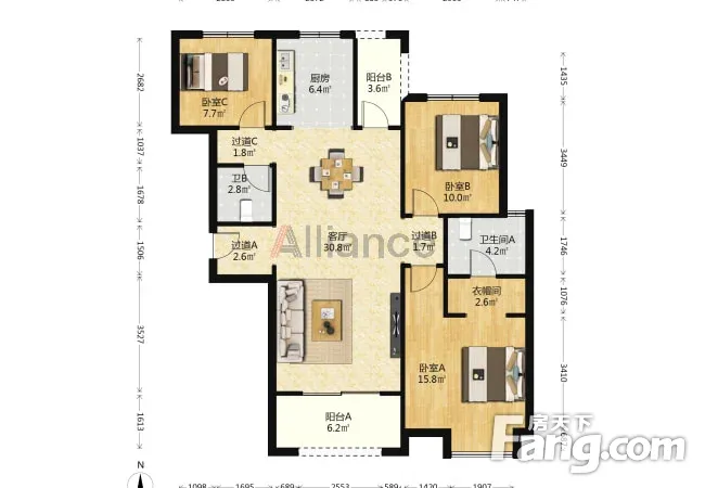 户型齐全,主打南北通透,全明格局,客厅朝南,卧室朝南三居