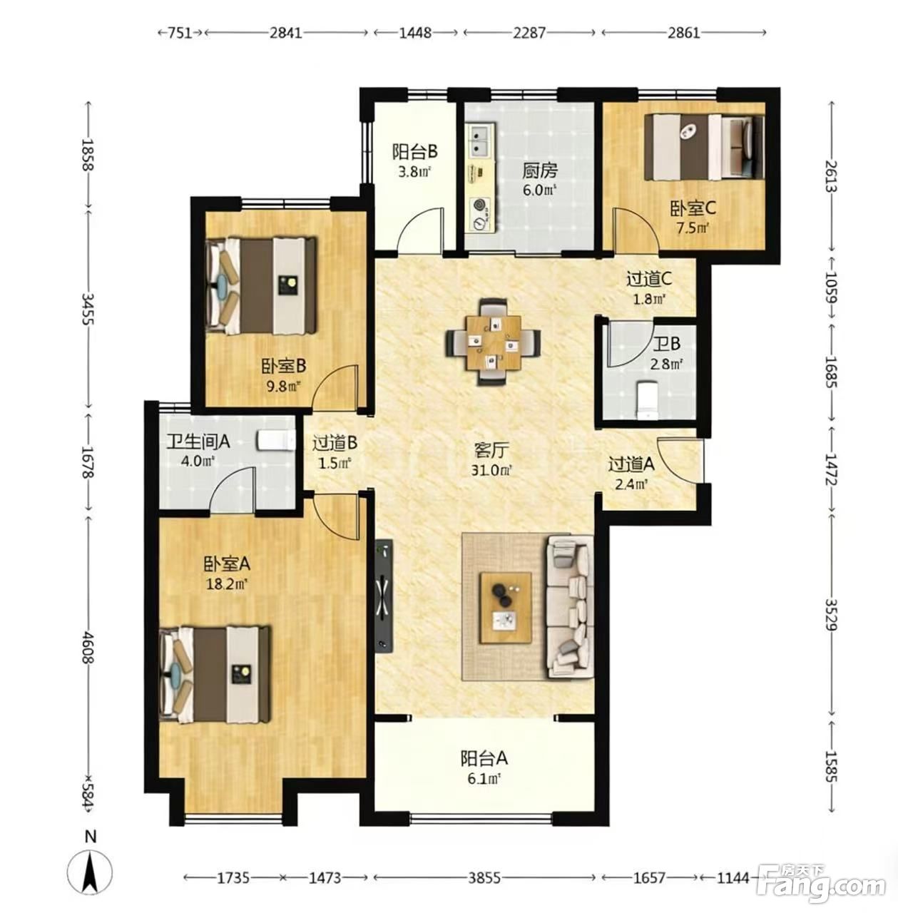 金地中央公园二期3室2厅南北