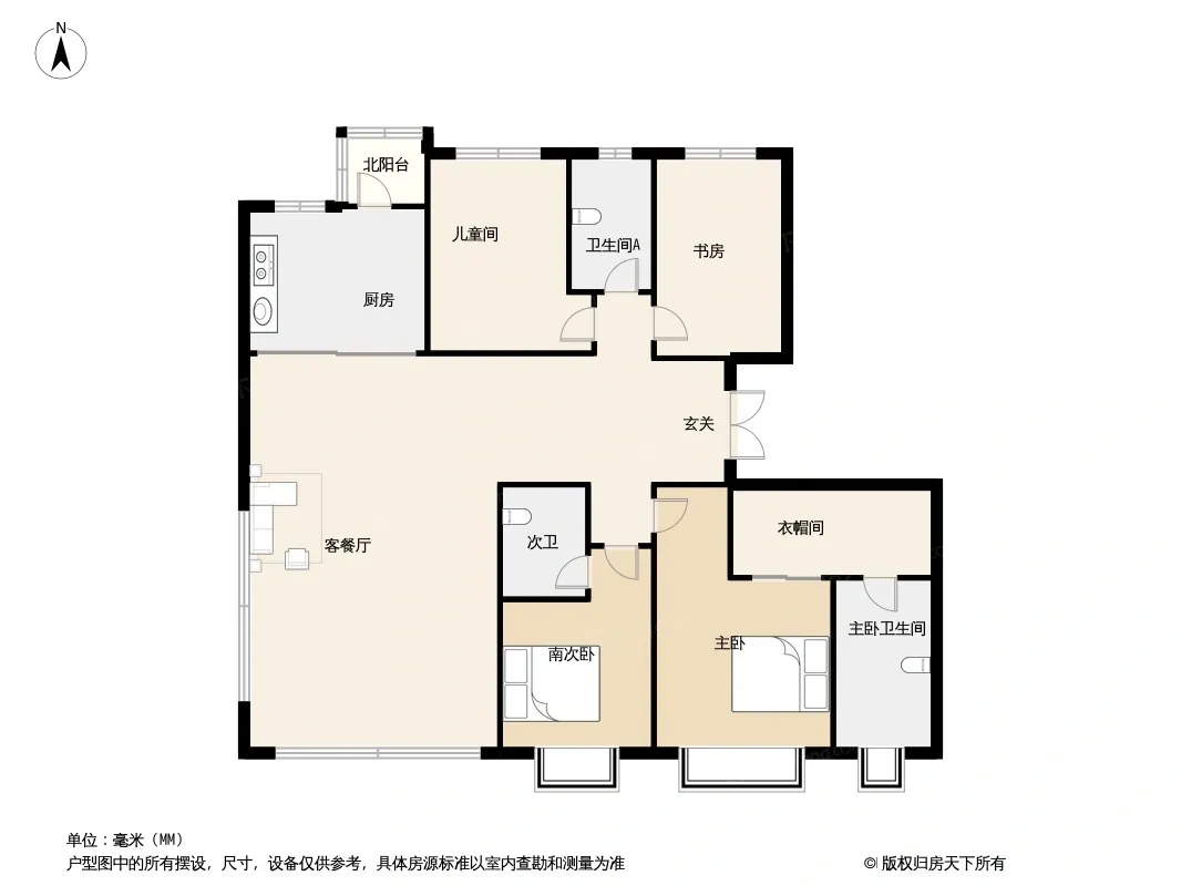 户型齐全,主打采光充足,独立玄关,观景落地窗,观景飘窗,独立衣帽间,中西双厨四居