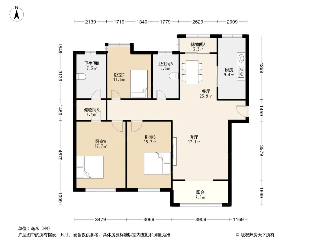 户型齐全,主打户型方正,明卫,明厨,主卧朝南三居