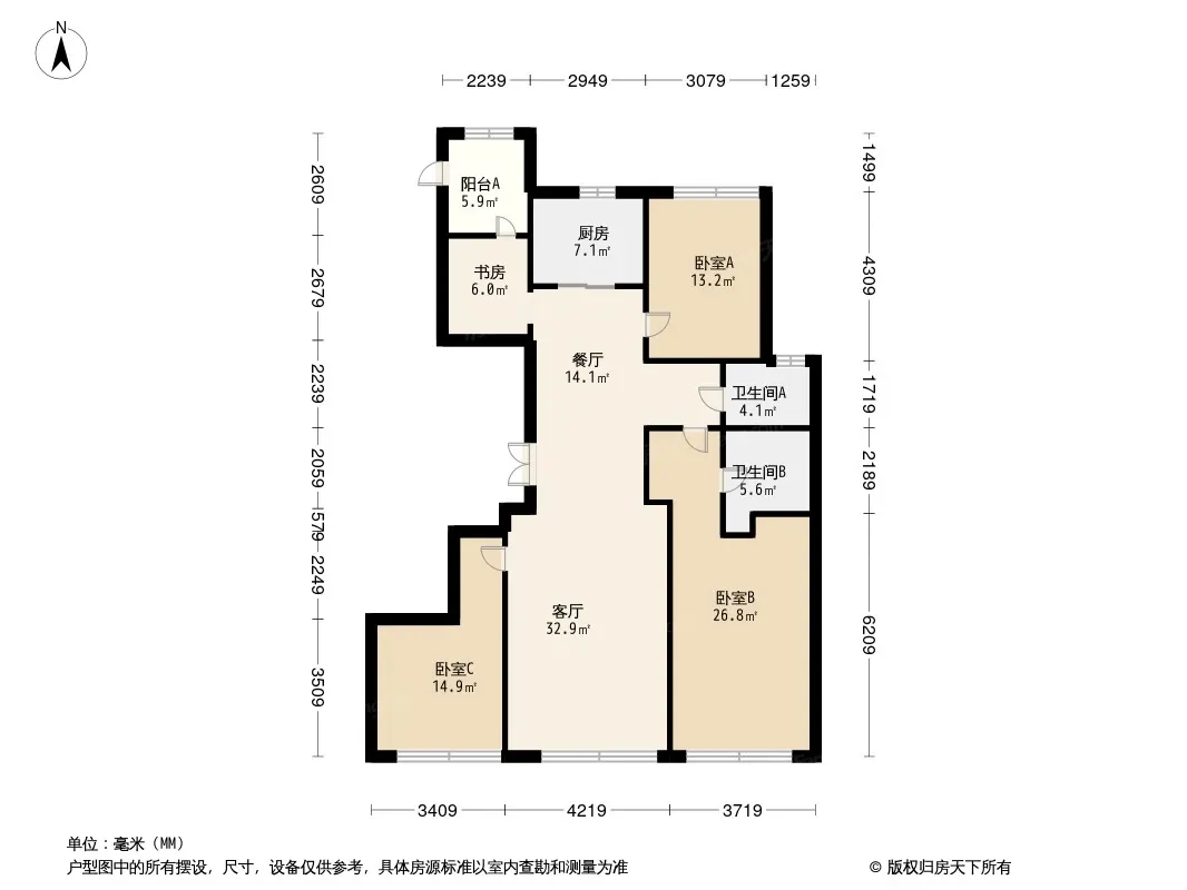 户型齐全,主打全明格局,户型方正三居