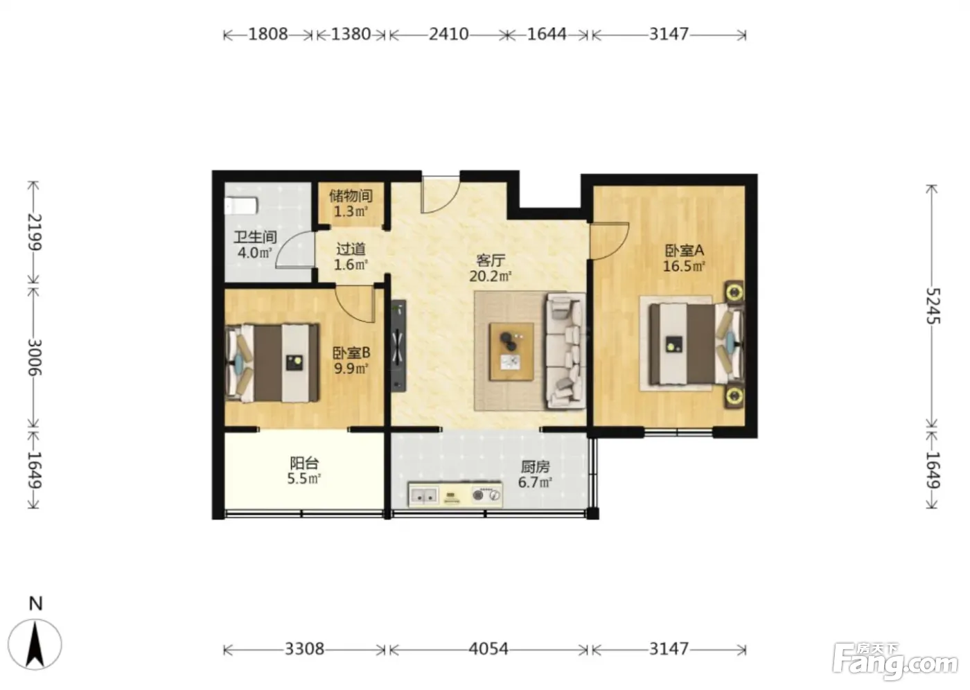 户型齐全,主打户型方正,明厨,主卧朝南二居