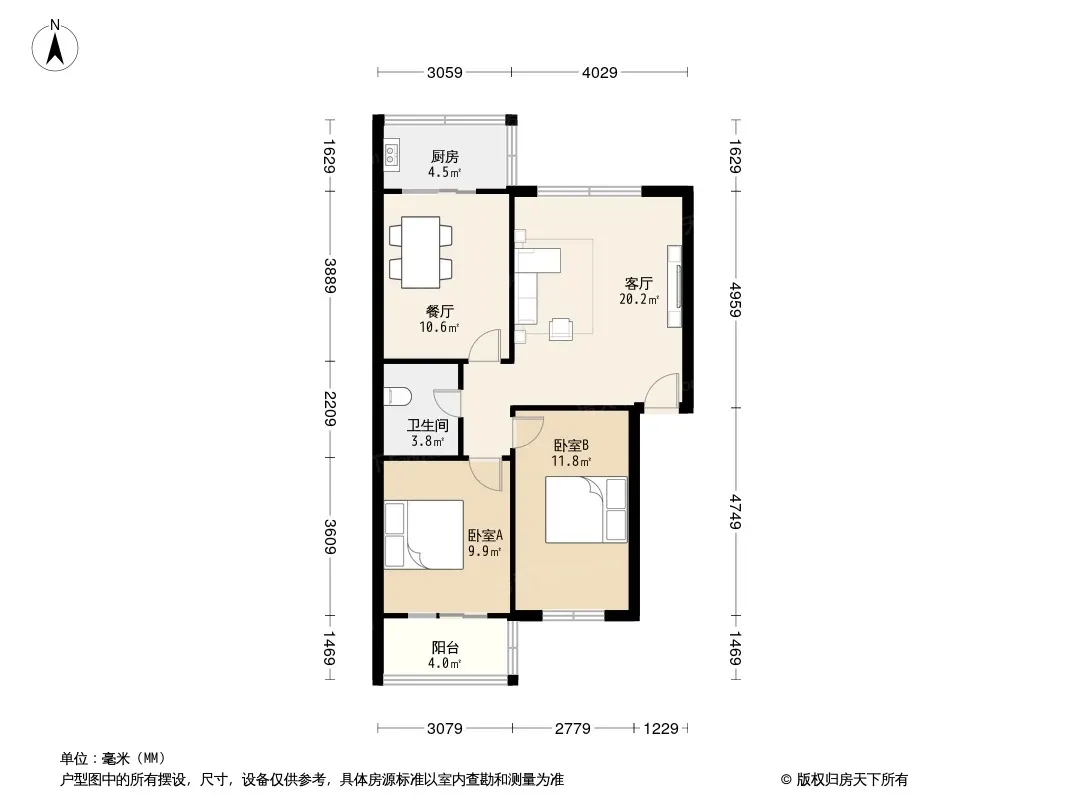 户型齐全,主打户型方正,明厨,主卧朝南二居