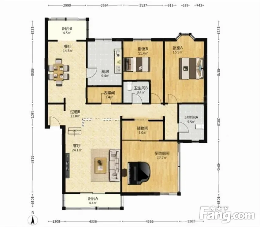 户型齐全,主打户型方正,独立衣帽间,明卫,双阳台三居