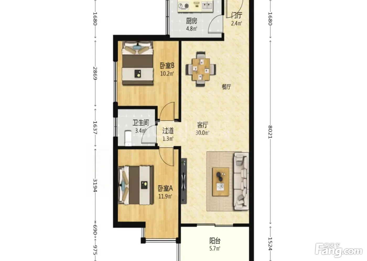 户型齐全,主打明卫,明厨,客厅朝南,全明格局,双卧朝南,主卧朝南三居