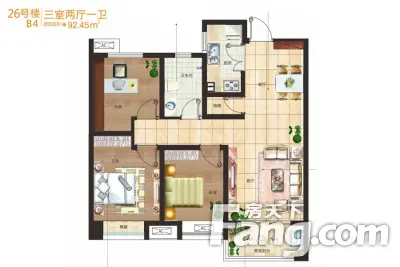 户型齐全,主打户型方正,入户花园三居