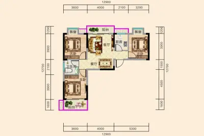 户型齐全,主打户型方正,大面宽阳台三居