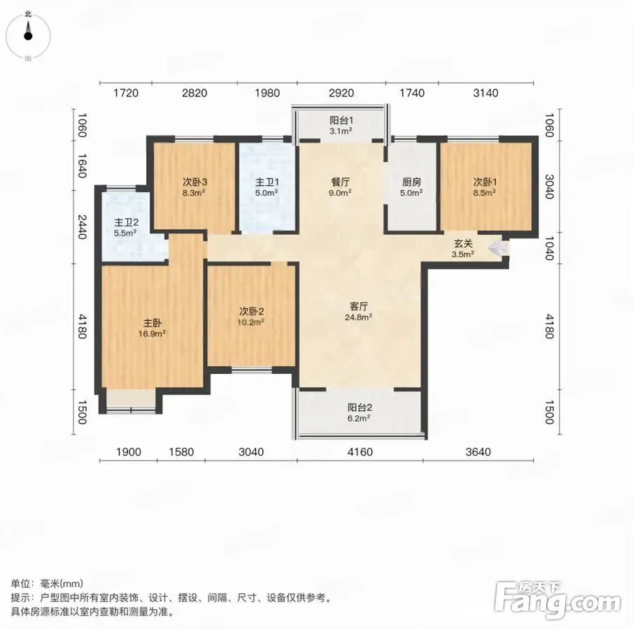 户型齐全,主打南北通透,主卧带卫,厨卫不对门四居