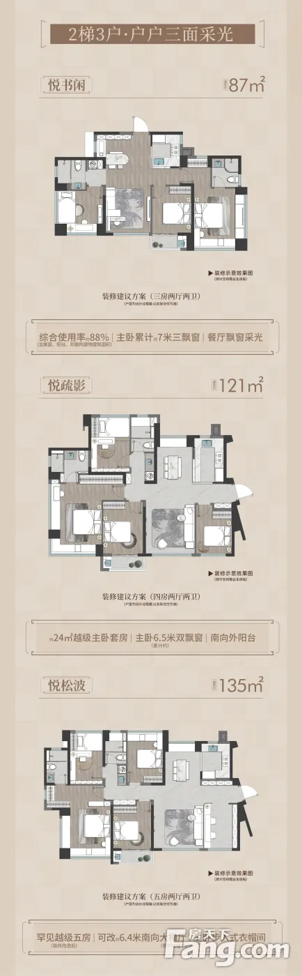 高层1、87㎡的综合使用率高达88%,使用面积达到约77㎡; 2、121㎡的综合使用率高达86%,使用面积达到约104㎡ 3、135㎡的综合使用率高达87%,使用面积达到约117㎡洋房 4、95㎡的综合使用率高达92-106%,近乎零公摊,使用面积达到约87-㎡ 5、105㎡的综合使用率高达98-105%,近乎零公摊,使用面积达到约103-110㎡ 6、125㎡的综合使用率高达98-106%,近乎零公摊,使用面积达到约123-133㎡。 看房热线:张137+2087+0023(WX同)全程专车免费接送,享团购优惠价